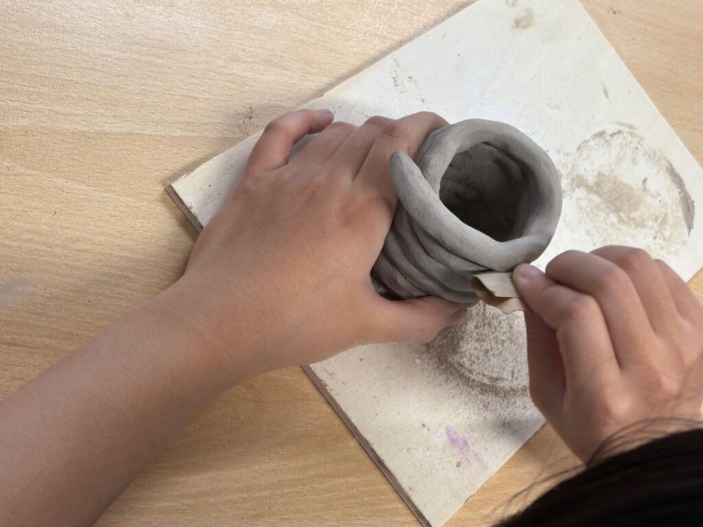 ニュース一覧 HOME NEWS 後期-金曜クラス(陶芸) OCT 10 後期-金曜クラス(陶芸) ART 金曜日の授業では、陶土を使ってマグカップ(もしくはカップ)制作をおこなっています。 今年は陶土を少し多めに購入したので、1人2つまで陶芸制作ができます。マグカップ(もしくはカップ)を作り終えた生徒は平皿に挑戦していました。 乾燥後、焼成し、コート剤を塗り完成です! 前のページへ戻る
