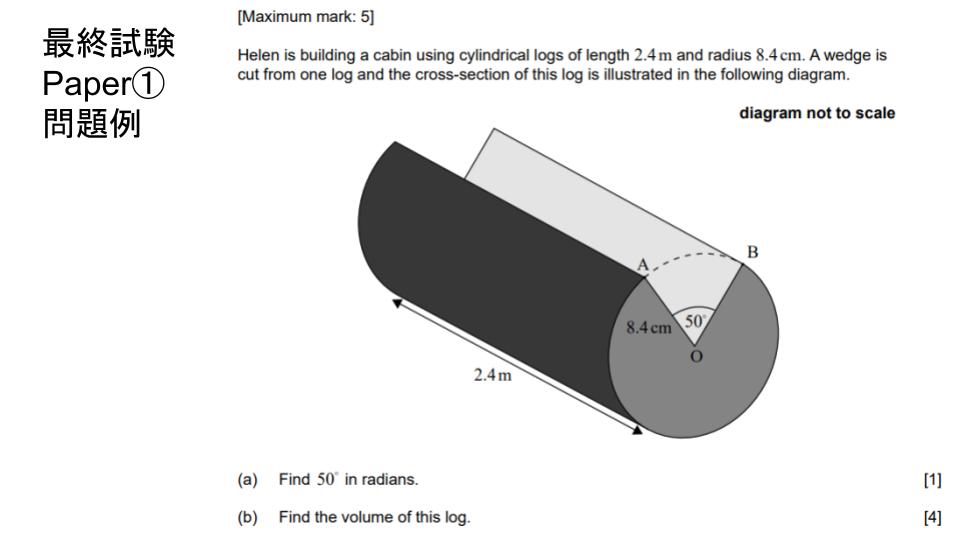 最終試験では、公式集や電卓を駆使して問題を解いていきますので、それらの使い方も非常に大切になっていきます。以下の問題例の後半では、日本のカリキュラムだと中学1年生で学習する範囲ですが、IBDPのカリキュラムとなります。
