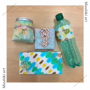 ニュース一覧 HOME NEWS 3学期-水曜クラス(水引と和紙染め) MAR 01 3学期-水曜クラス(水引と和紙染め) ART 3学期の最後の授業では、和紙染めに水引をくくりつけ、ラッピングをしました。 限られた時間でしたが、色とりどりの水引の中から「この形をつくってみたい!」という気持ちと原動力を大切にする時間となりました。 やわらかな和紙の色合いに、鮮やかな発色の水引でアクセントをプラスしたデザインになりました。 前のページへ戻る
